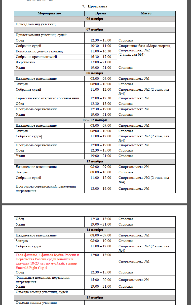 Обратите внимание, что по ЕКП день отъезда 14 ноября, но гала-финалы и награждение участников Кубка России и Первенства России состоятся 14 ноября с 15:00 до 20:00.