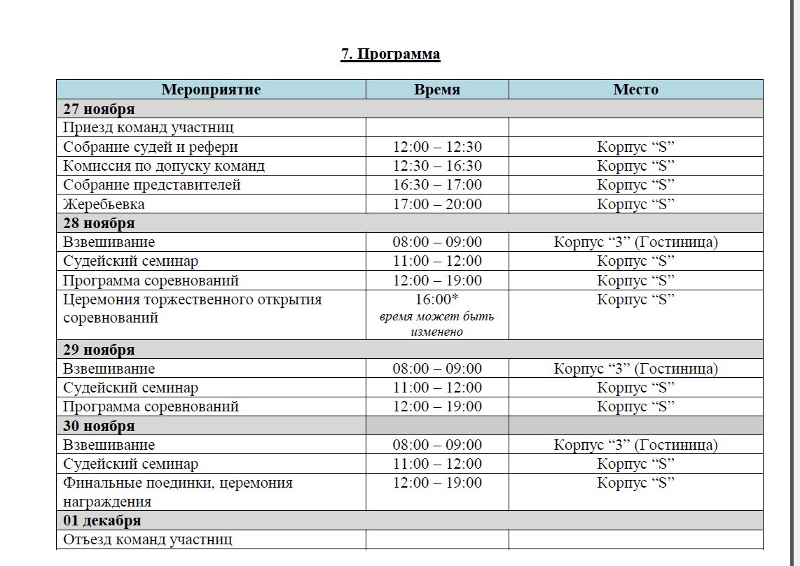 Важно: комиссия по допуску и жеребьевка состоятся согласно официальным заявкам на соревнования. В день комиссии по допуску общего взвешивания НЕ будет.