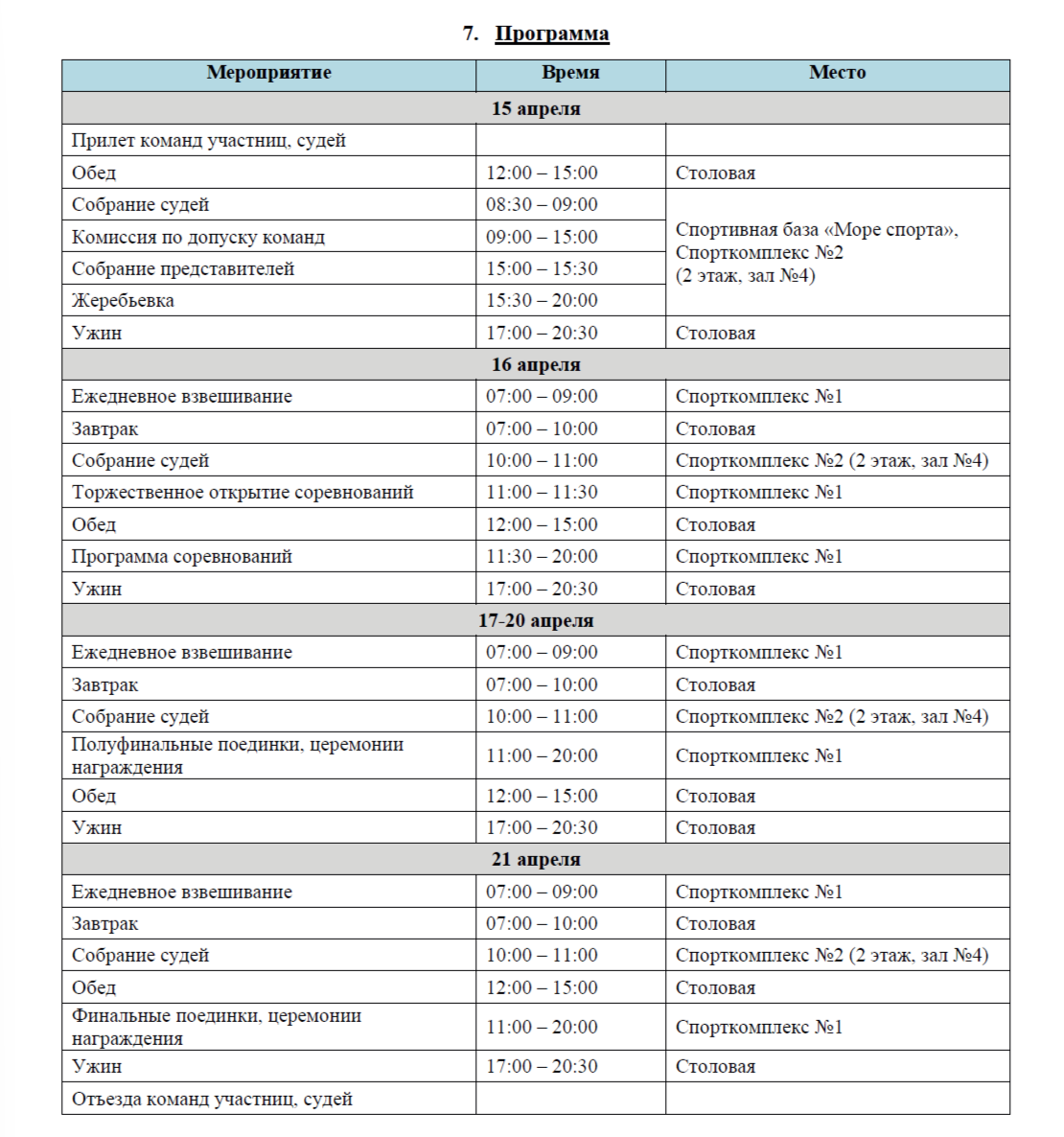 Мероприятия состоятся в период с 15 по 21 апреля 2026 года, Нижегородская область, Городецкий р-н, д Большой Суходол, спортивная база «Море Спорта».