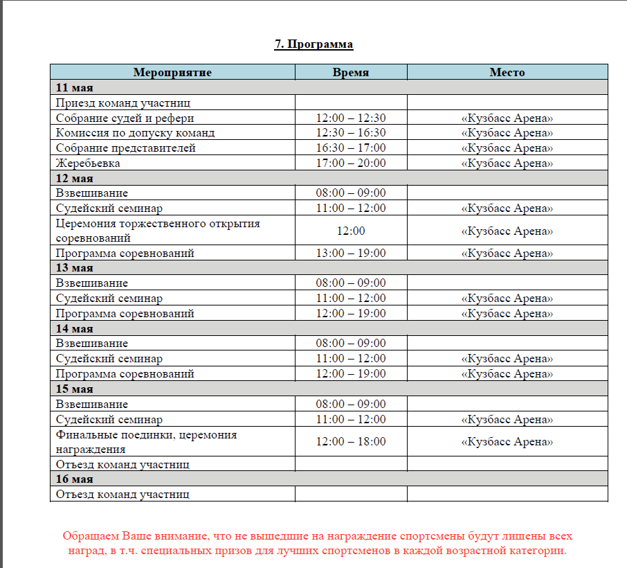 Важно: комиссия по допуску и жеребьевка состоятся согласно официальным заявкам на соревнования. В день комиссии по допуску общего взвешивания НЕ будет.