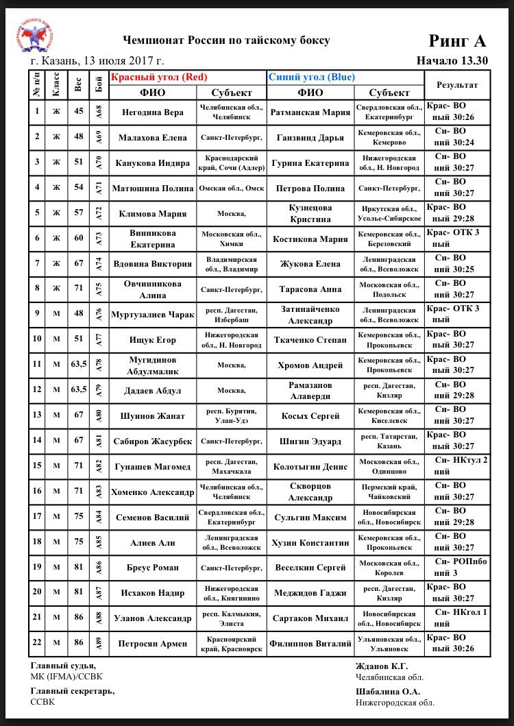 Главная – Пресс-центр – Новости – Тайский бокс – Любительский спорт – Чемпионат России 2017: 13 июля. 4 соревновательный день