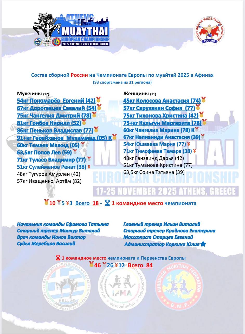 Сборная России по муайтай – сильнейшая команда Европы